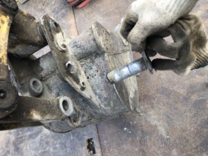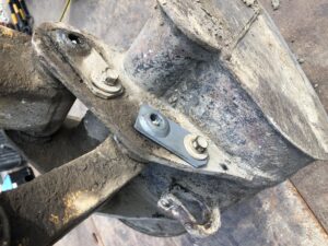 お客様より所有している2t油圧ショベルのバケットピンが折れた、と出張修理の依頼をいただく。