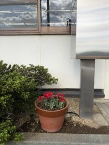 女性の気遣いで、事務所入り口が華やかになりました!!